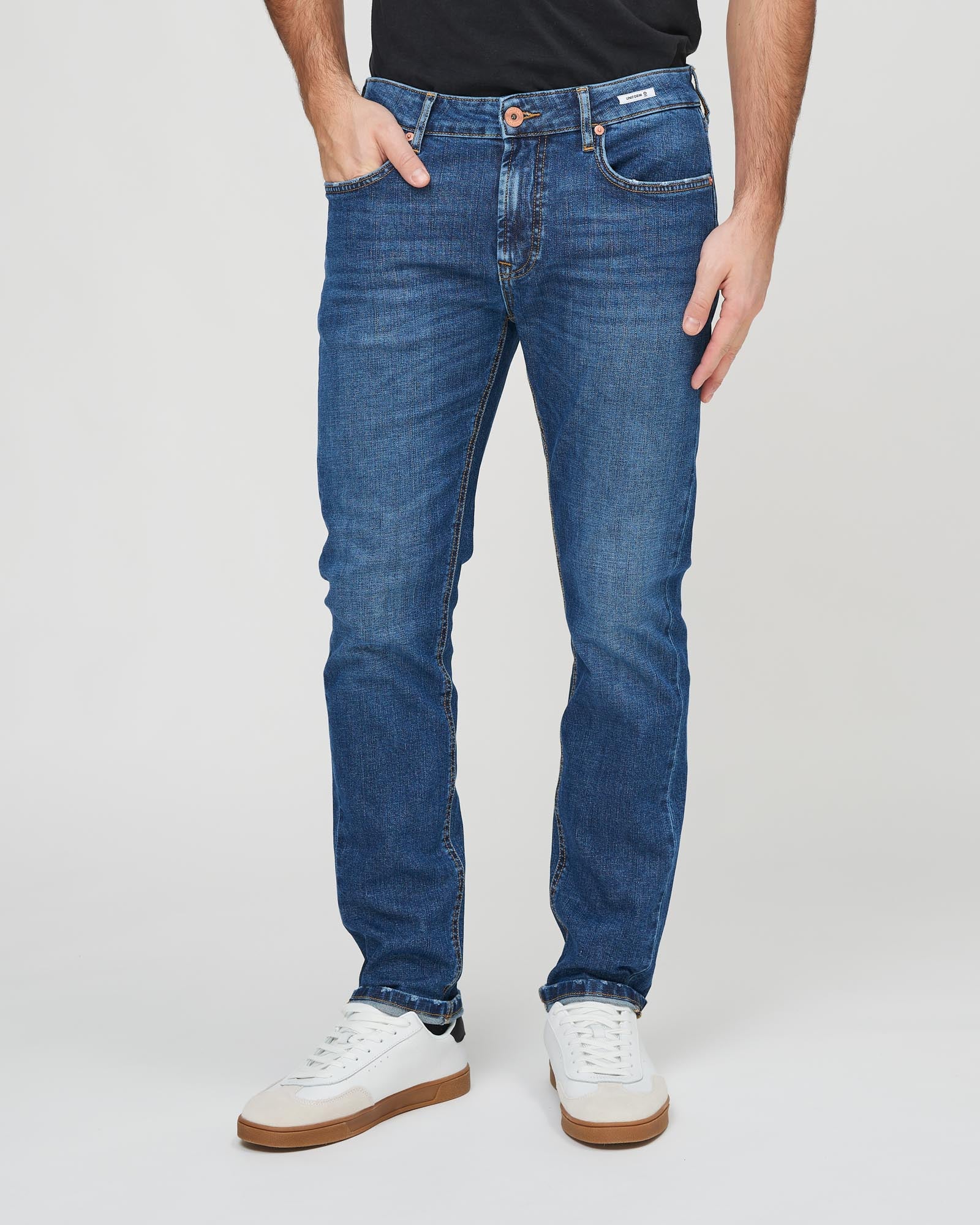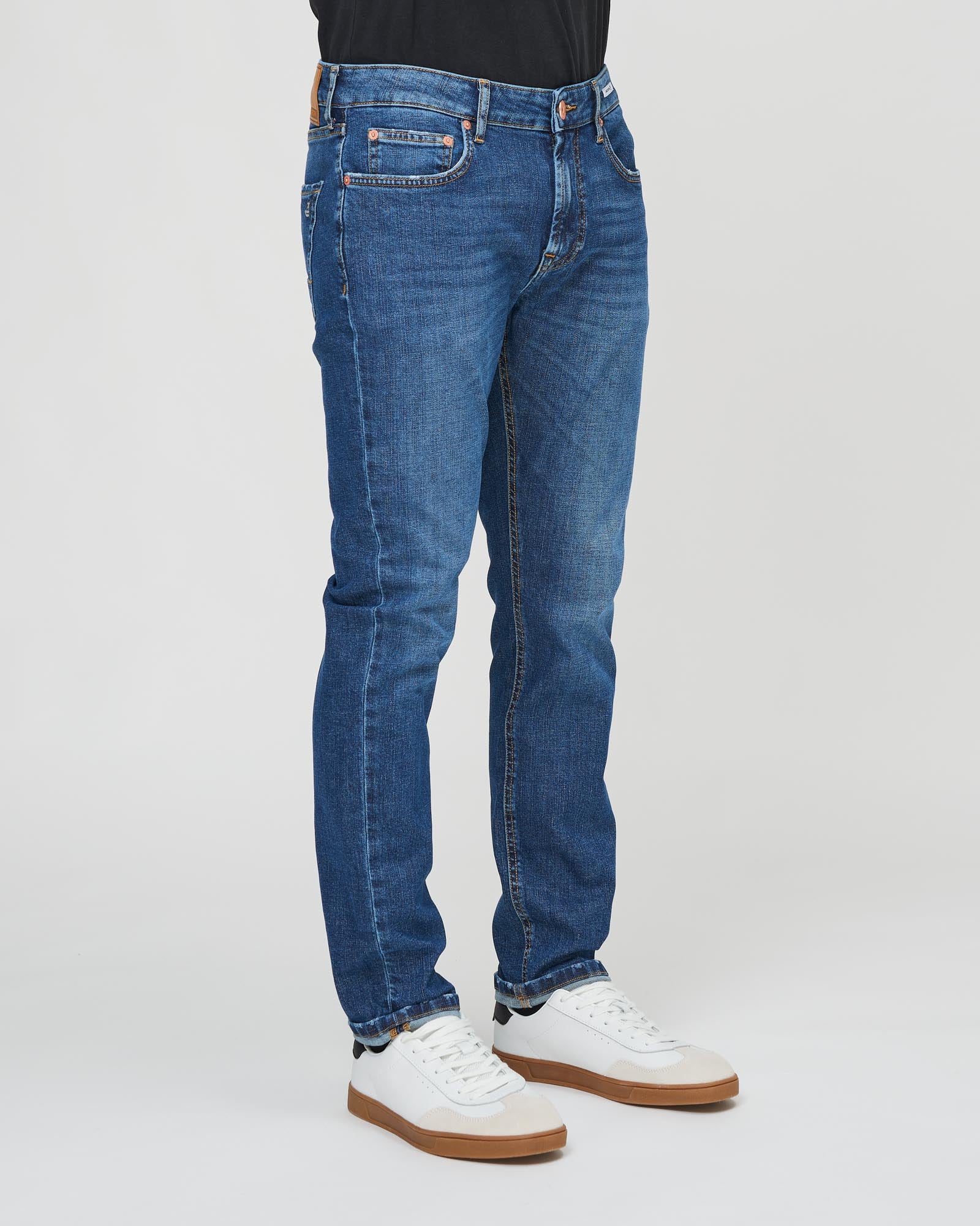 Jeans slim a cinque tasche in Mid Blue Denim dalla silhouette pulita e dalla vestibilità slim ma non eccessivamente aderente. La Ibanez Slim Fit offre un look contemporaneo e versatile, ideale per chi cerca un equilibrio tra comfort e una silhouette moderna.